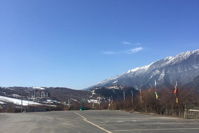好像说远了。还是说回购物的事情吧。我发现,今天去的这几个购物点都是在比较偏僻的地方的,前几个没仔细看路牌,而那个药店我是特意看了一下路牌的,上面写的是麻依村,大约是一个什么村庄吧。我们下车的时候,我看到一个妈妈推着一个专门用来装水泥的那种两轮铁车,而车里面坐的是一个小孩子。道路两边是藏民的房子。看起来似乎也没什么人气。我不知道该如何形容那种感觉。天空十分晴朗,远山有皑皑白雪,随处可见的都是如诗如画的美景。