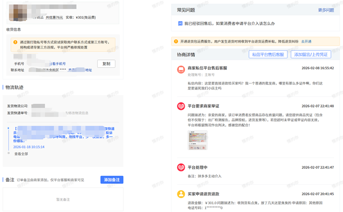 之前那一个退单发生的时候,我已经想着要退店了事了,但又想着还是过了春节之后再试试吧,因为厂家放假了,只能等过完年再看看了。可如今发生了这么一个情况之后,我是真的崩溃了。以前只听过仅退款的,这一次是真正遇见了。我也不知道衣服有没有味道。但同一款衣服我之前收到退货的时候,是打开看过的,特意闻过的,我是没闻到有什么味道。