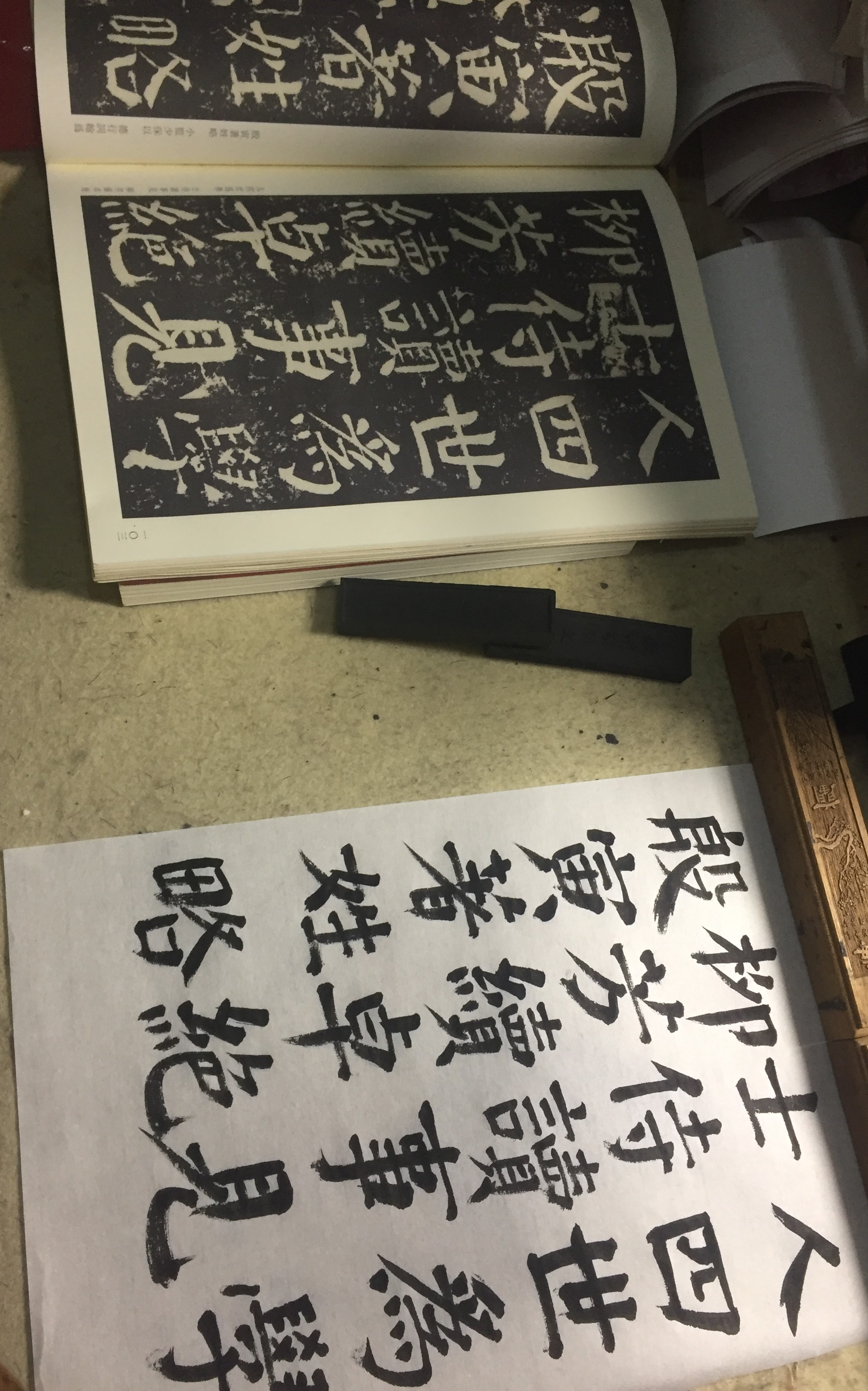 昨天下午又骑着摩托车出去了一趟,也是去了之前常去的那个位于新都的公园晒了一会儿太阳。回来之后到了晚上再练字的时候,明显感觉不太一样了。这种感觉以前也有过,但昨晚忽然有了一些不同的顿悟,我不禁问了自己一句,“骑摩托车和练书法有什么必然联系吗?”答曰:“似乎真的有!骑摩托车回来之后,写起毛笔字来明显轻松了不少!这对楷书书法练习来说,是很有用的!有一种举重若轻的感觉!”